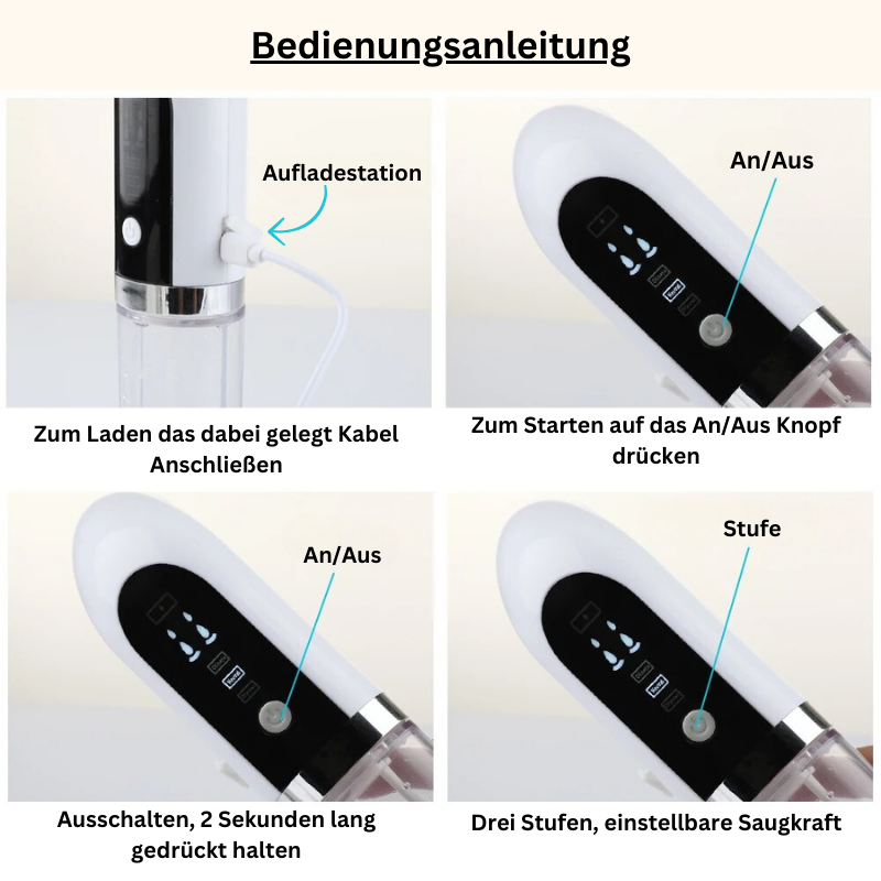 Für die Saugkraft vom Porenreiniger wird das Saubere Wasser verwendet um die Poren gründlich zu saugen, das unreine Wasser was dadurch entsteht wird in der anderen hälfte des Reinigers gesammelt.