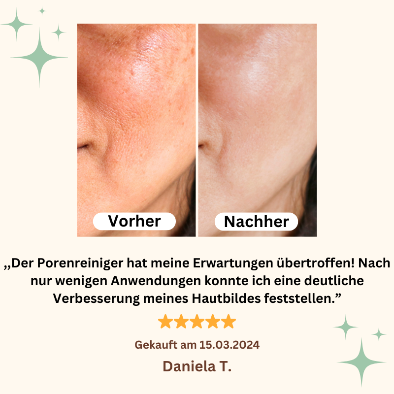Durch die Entfernung von überschüssigem Öl, abgestorbenen Hautzellen und anderen Verunreinigungen aus den Poren kann ein Porenreiniger dazu beitragen, das Risiko von Hautproblemen wie Akne und Mitessern zu minimieren.